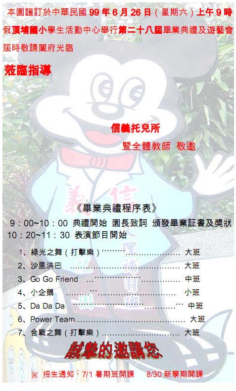 新竹市私立信義托兒所第28屆畢業典禮邀請卡